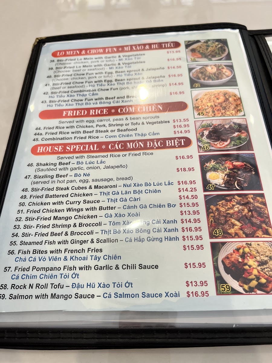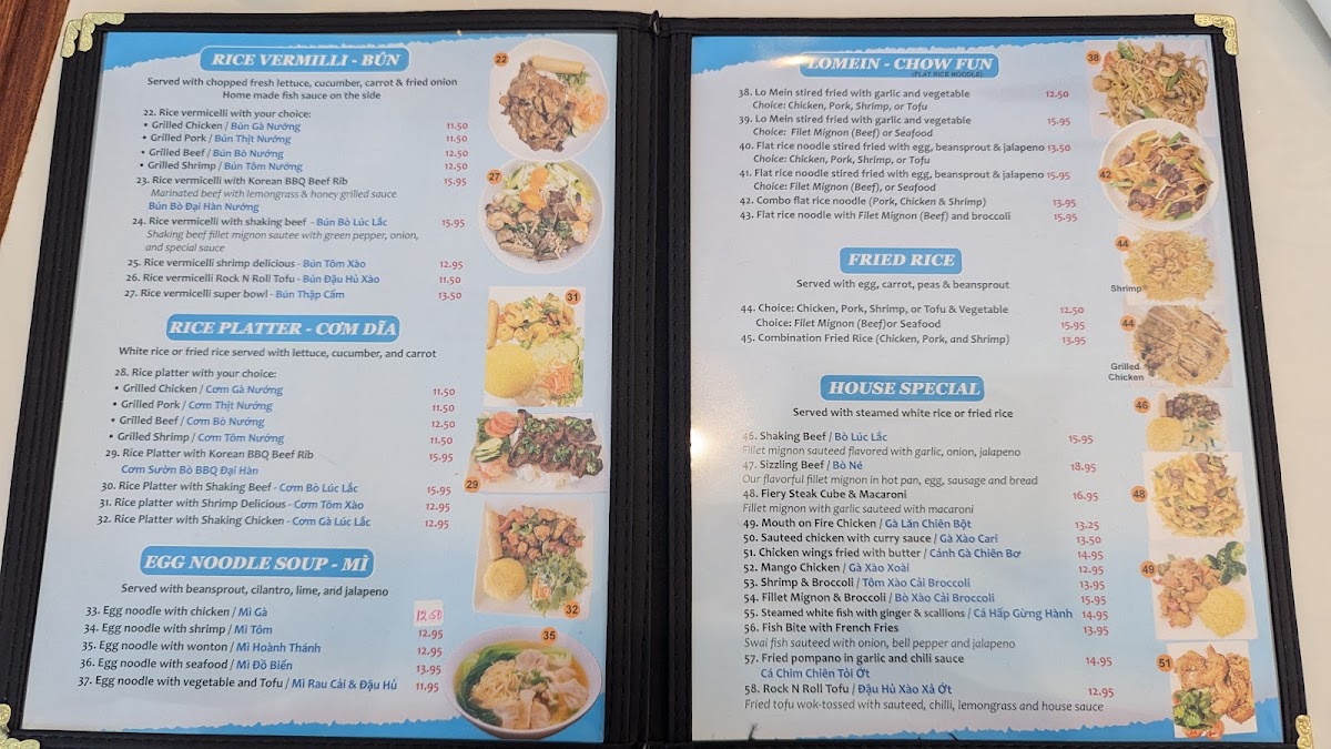 Rock n roll tofu with rice. Choose from Shrimp, Chicken, Pork, Tofu Spring Roll, or Egg Roll. Served with a choice of various teas, sodas, or Dr Pepper.
