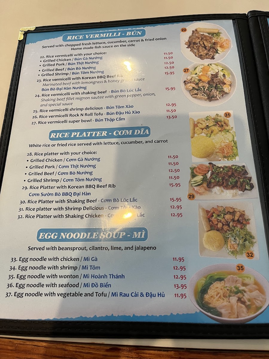 Choice of chicken, pork, shrimp or tofu. / Chọn gà, tôm, heo hay đậu hũ.